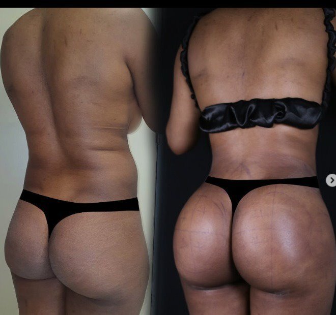 Brazilian buttock lift with vaser technology including belly fat removal and reinjection to buttocks.